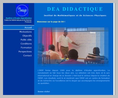 L'IMSP forme depuis 1989 pour le diplôme de Master en Didactique. Le recrutement se fait tous les deux ans. La sélection est très dure et le jury international en charge de ce dossier y met tout le sérieux depuis la création de l'IMSP. Les résultats sont là et montrent que l'IMSP est un centre de formation et de recherche où l'excellence est le slogan qui accompagne les enseignements au quotidien.